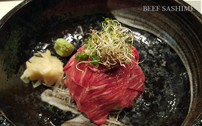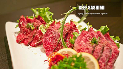 Beef tataki (sashimi) refers to a Japanese method of preparing fillet beef, where the meat is lightly seared, marinated, sliced thinly similar to sashimi, and served with a citrus-soy dipping sauce.